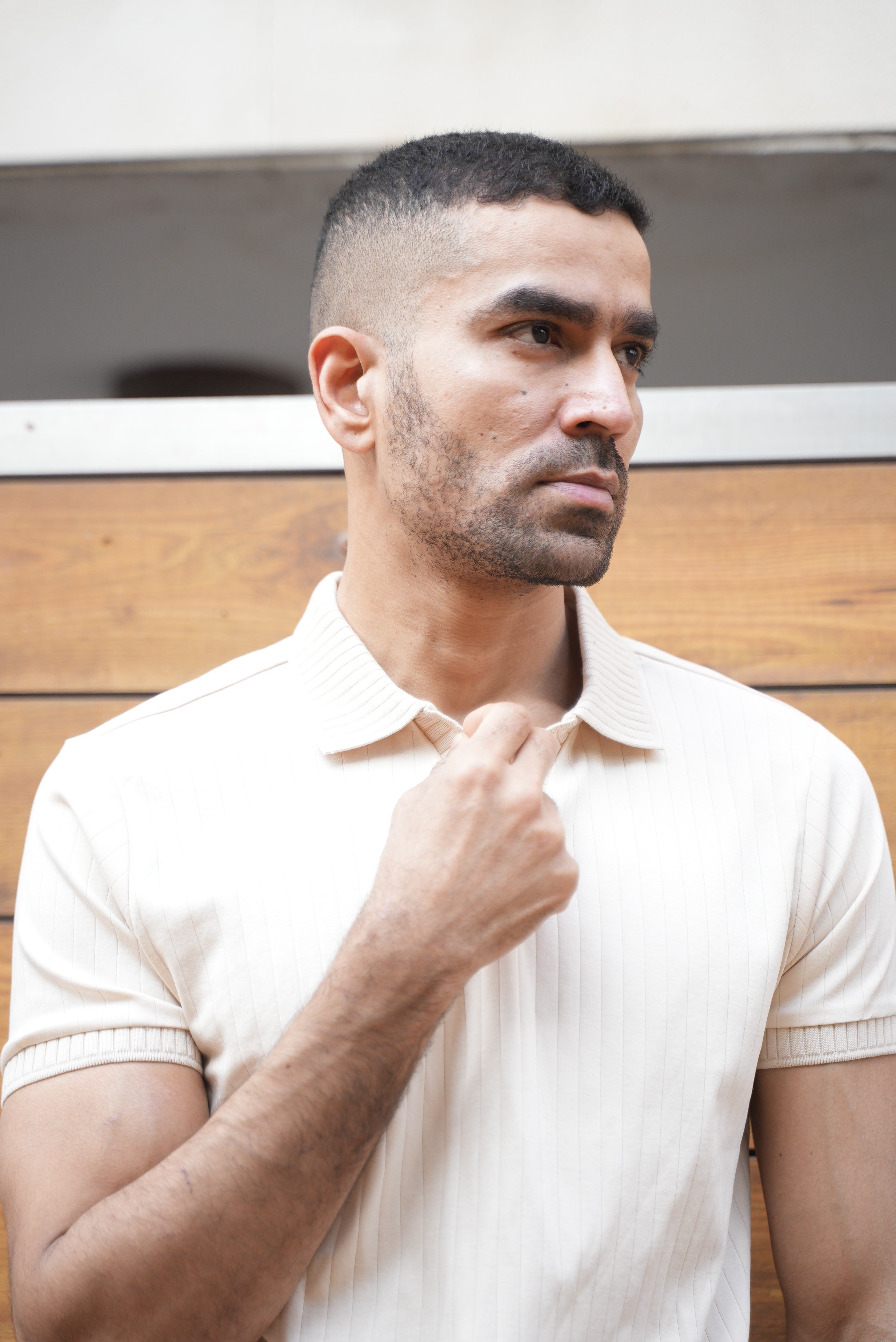 As this polo is knitted with natural fibres, the fabric may relax and elongate slightly (3–5%) after the first wash and then stabilize. If you prefer a slim fit, do not size up. If unsure, always choose the larger size.